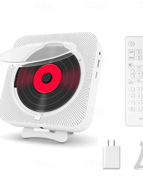 KC-909 lettore musicale portatile CD altoparlante integrato stereo con doppia presa per cuffie da 3,5 mm schermo LED montabile a parete con telecomando IR supporta CD/BT/FM/TF card/AUX regalo di San