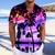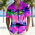 Camicia hawaiana estiva da uomo Ouku con bottoni, a maniche corte, con motivo a foglie di palma e piante tropicali, per resort hawaiano, per vacanze, abbigliamento da spiaggia, estate e primavera, con colletto rovesciato, una tasca frontale, rosa e blu.