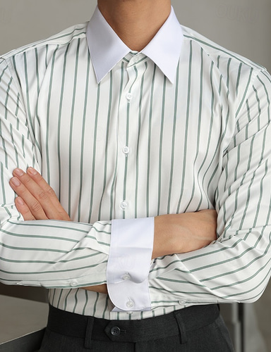 Per uomo Camicia Camicia elegante Camicia con Bottoni A righe Matrimonio Feste Nero Bianco Verde chiaro Blu Manica Lunga Bavero Primavera & Autunno Abbigliamento