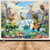 dinosauri divertenti che suonano la chitarra, t-rex musicale, triceratopo, paesaggio preistorico, cascata, arazzo da parete, decorazione da parete per camera da letto per bambini, sala giochi per