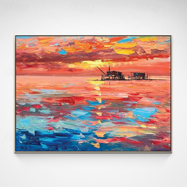 Dipinto ad olio fatto a mano dipinto a mano arte della parete moderna paesaggio marino alba immagine astratta decorazione della casa arredamento tela arrotolata senza cornice non stirata