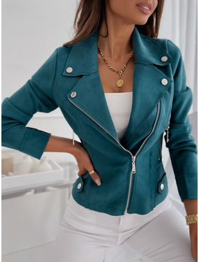 Per donna Giacca in Ecopelle Giacca Casual Confortevole Traspirante Cerniera Tasca Moda Casual Semplice Vacanza Streetwear Casuale Abbigliamento quotidiano Cerniera Corto Collo ripiegato Taglia