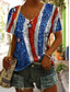 Grafica Bandiera patriottica delle donne per il Giorno dell'Indipendenza Vintage Elegante Casual Top Regolari Vestibilità Giornaliera Bianca Rossa Blu Primavera