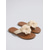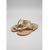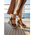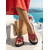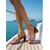 Eleganti sandali bassi da donna in camoscio color cuoio - comodi sandali con anello per le dita e grande gioiello in cristallo, perfetti per viaggi in yacht di lusso e fughe su isole paradisiache.
