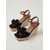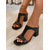 Eleganti sandali con zeppa da donna neri con perle sintetiche, perfetti per crociere e feste serali sul ponte. &abbigliamento da resort di lusso