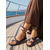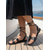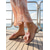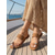 Eleganti sandali bassi da donna marroni con lacci - comodi sandali in pelle con cinturino alla caviglia, perfetti per crociere e feste in yacht. &Vacanze estive di lusso nel Mediterraneo