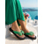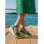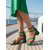 Eleganti sandali da donna verdi e rossi con lacci - tacco a blocco con punta quadrata e triplo cinturino alla caviglia, perfetti per crociere e feste in yacht. &abbigliamento estivo da resort