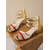 Sandali da donna glamour con tacco a blocco metallizzato color oro - eleganti sandali con tacco alto e cinturino incrociato alla caviglia, perfetti per crociere di lusso e feste in yacht. &eventi
