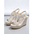 Sandali da donna in lino color crema con fiocco - eleganti espadrillas con zeppa per crociere e vacanze estive tropicali. &abbigliamento da resort di lusso