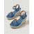 Sandali con zeppa in denim blu da donna - espadrillas casual con cinturini intrecciati e plateau con fibbia alla caviglia, ideali per crociere di lusso e resort tropicali. &eventi estivi sul terrazzo