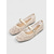 Eleganti ballerine da donna in rete color albicocca - scarpe Mary Jane traspiranti con applicazioni di fiori di perle, perfette per crociere e relax su yacht di lusso. &abbigliamento estivo da resort