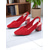 Scarpe da donna con tacco a blocco rosso, modello Mary Jane, con punta tonda in finta pelle scamosciata e cinturino alla caviglia, stile vintage per ufficio, feste e uso quotidiano
