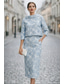 Abito a due pezzi a colonna lunghezza caviglia lunghezza tè in pizzo abito da prom abito da festa abito per madre della sposa maniche lunghe scollo tondo elegante vintage festa formale in pizzo con