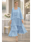 Linea ad A Asimmetrico Lunghezza Tè Vestito da Festa Abito da Cocktail Abito da invitata a nozze Abito da cerimonia per signora Manica 3/4 Scollo Tondo Elegante Alto Basso Ospite di nozze Compleanno