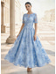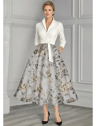 Linea ad A Lunghezza alla caviglia Vestito da Festa Abito da Cocktail Abito da invitata a nozze Abito da cerimonia per signora Manica 3/4 Collo gioiello Elegante Floreale Madre Formale Derby del