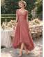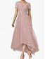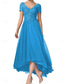 Linea ad A Asimmetrico Vestito da Festa Abito da Cocktail Abito da invitata a nozze Abito da cerimonia per signora Manica Corta Scollo a V Elegante Formale Ospite di nozze Serata Formale Chiffon con