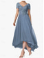 Abito da Festa A-Line Asimmetrico Abito da Cocktail Abito per Ospiti di Nozze Abito per Madre della Sposa Mezza Manica Collo Barchetta Elegante Semplice Formale Ospite di Nozze con Colore Solido