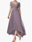 Linea ad A Asimmetrico Lunghezza alla caviglia Vestito da Festa Abito da Cocktail Abito da invitata a nozze Abito da cerimonia per signora Mezza Manica Scollo a V Elegante Taglie Forti Alto Basso