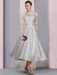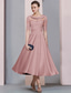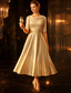 Linea ad A Abito Lunghezza Tè Vestito da Festa Abito da Cocktail Abito da invitata a nozze Abito da cerimonia per signora Manica 3/4 Scollo a Barca Elegante Vintage Ospite di nozze Raso con Perline