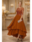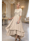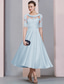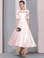 Linea ad A Lunghezza Tè Vestito da Festa Abito da Cocktail Abito da invitata a nozze Abito da cerimonia per signora Manica Corta Girocollo Scollo a Barca Elegante Formale Ospite di nozze Riunione di
