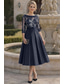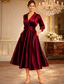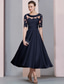 Linea ad A Lunghezza Tè Vestito da Festa Abito da Cocktail Abito da invitata a nozze Abito da cerimonia per signora Mezza Manica Scollo Tondo Elegante Vintage Ospite di nozze Raso Pizzo con