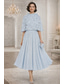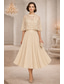 Linea ad A Lunghezza Tè Abito Formale Abito da sera Abito da cerimonia per signora Manica 3/4 Senza Spalle Elegante Vintage Formale Ricevimento di matrimonio Derby del Kentucky Raso Jacquard con