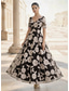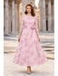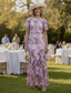 Tubino Colonna Lunghezza alla caviglia Abito da cerimonia per signora Manica Lunga Scollo a V Elegante Vintage Formale Ospite di nozze Ricevimento di matrimonio Tulle con Stampa floreale Fiori 3D