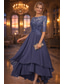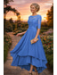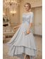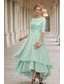 Linea ad A Asimmetrico Lunghezza Tè Vestito da Festa Abito da Cocktail Abito da invitata a nozze Abito da cerimonia per signora Manica 3/4 Scollo Tondo Elegante Alto Basso Ospite di nozze Compleanno