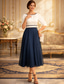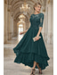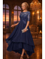 Sirena Tromba Abito Asimmetrico Lunghezza Tè Vestito da Festa Abito da Cocktail Abito da invitata a nozze Abito da cerimonia per signora Mezza Manica Collo gioiello Elegante Vintage Formale Ospite di