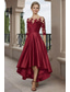 Linea ad A Asimmetrico Vestito da Festa Abito da Cocktail Abito da invitata a nozze Abito da cerimonia per signora Manica Corta Scollo a V Elegante Alto Basso Raso con Volant