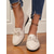 mocassini da donna in tela con tacco basso – scarpe basse da ufficio bianche e marroni per il lavoro e gli spostamenti quotidiani