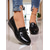 mocassini da donna in similpelle nera con fibbia dorata: scarpe basse casual slip-on da indossare tutti i giorni, in ufficio e in viaggio