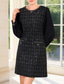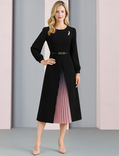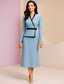 Abito a tubino a lunghezza ginocchio Abito da festa Abito da cocktail Abito per matrimonio Abito per madre della sposa Maniche lunghe Girocollo Elegante Vintage Festa in cotone misto con blocchi di