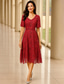 Tubino Colonna Lunghezza Tè Vestito da Festa Abito da Cocktail Abito da invitata a nozze Abito da cerimonia per signora Mezza Manica Scollo a V Elegante Vintage Lussuoso Formale Ospite di nozze Raso