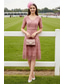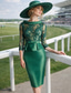 Due Pezzi Tubino Colonna Lunghezza al ginocchio Abito da invitata a nozze Abito da cerimonia per signora Manica Corta Scollo a V Elegante Ospite di nozze Ricevimento di matrimonio Chiffon Pizzo Abiti