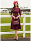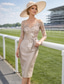 Due Pezzi Tubino Colonna Lunghezza al ginocchio Abito da invitata a nozze Abito da cerimonia per signora Mezza Manica Scollo profondo Ospite di nozze Chiesa Raso Pizzo Abiti Corti con Giacca con