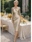Due Pezzi Tubino Colonna Set di Abiti Lunghezza al ginocchio Abito da invitata a nozze Abito da cerimonia per signora Manica 3/4 Scollo a V Elegante Vintage Ricevimento di matrimonio Semi-Formale Raso