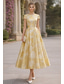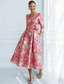Linea ad A Lunghezza Tè Abito Formale Abito da sera Abito da cerimonia per signora Manica 3/4 Senza Spalle Elegante Vintage Formale Ricevimento di matrimonio Derby del Kentucky Raso Jacquard con