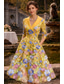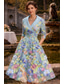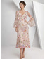 Tubino Colonna Lunghezza alla caviglia Abito da cerimonia per signora Manica Lunga Scollo a V Elegante Vintage Formale Ospite di nozze Ricevimento di matrimonio Tulle con Stampa floreale Fiori 3D