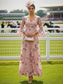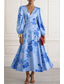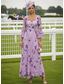 Linea ad A Lunghezza alla caviglia Abiti da Cocktail Elegante Floreale Manica Lunga Scollo a V Festa in giardino Matrimonio Raso con Stampa floreale