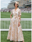 Linea ad A Lunghezza alla caviglia Abito da invitata a nozze Abito da cerimonia per signora Manica Corta Bavero Elegante Vintage Brillare & Splendere Formale Ospite di nozze Derby del Kentucky