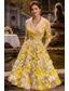 Linea ad A Lunghezza alla caviglia Abito a trapezio Abito Floreale Abiti da Cocktail Abiti da festa Elegante Vintage Mezza Manica Scollo a V Matrimonio Formale Jacquard con Farfalla Tasca