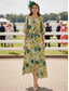 Abito da festa a linea A di lunghezza tè Abito da cocktail Abito da invitata di matrimonio Abito per la madre della sposa a maniche corte scollatura a V elegante lussuoso formale in misto cotone con