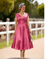 Due Pezzi Linea ad A Lunghezza Tè Abito da invitata a nozze Abito da cerimonia per signora Manica 3/4 Collo quadrato Elegante Vintage Taglie Forti Ospite di nozze Abiti con Giacca con Arricciatura