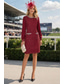 Tubino Colonna Lunghezza Tè Vestito da Festa Abito da Cocktail Abito da invitata a nozze Abito da cerimonia per signora Manica 3/4 Senza Spalle Elegante Vintage Semplice Formale Ospite di nozze Crêpe