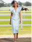Tubino Colonna Lunghezza alla caviglia Abito Derby Abiti da Ballo Elegante Manica Corta Girocollo Derby del Kentucky Raso con Tinta unita