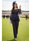 Tuta Completo Pantalone Tre Pezzi Lunghezza al pavimento Abito da cerimonia per signora Manica Lunga Scollo a Barca Elegante Taglie Forti Con Stola Formale Ospite di nozze Chiffon Con Stola con