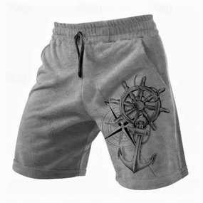 Per uomo Nautico Stampe Grafiche Bussola Pantaloncini da tuta Shorts da Spiaggia Pantaloncini in spugna Misura del girovita medio Retrò Vintage Casual Quotidiano Abbigliamento casual alla moda Ferie