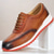 sneakers da uomo in pelle bovina di prima qualità marrone con dettagli traforati e chiusura con lacci – scarpe casual eleganti per l'uso quotidiano