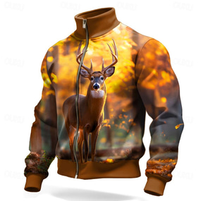 Per uomo Stampa 3D Cervo Felpa Casual Manica Lunga Girocollo Vacanza Feste Regalo Verde Cachi Grigio Girocollo 3D Tutte le stagioni progettista S M L XL XXL XXXL